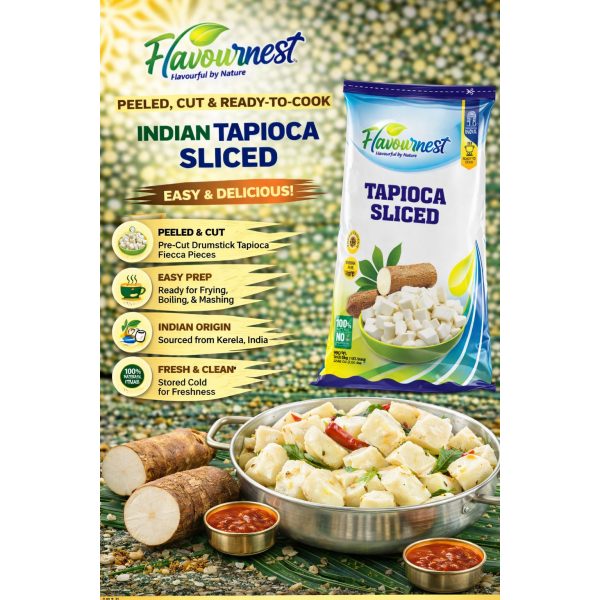 Perfect for frying, boiling, or preparing traditional dishes, these slices cook evenly and deliver a delicious, satisfying taste. Ideal for snacks, side dishes, or meals, FlavourNest Tapioca Sliced offers both convenience and authentic flavor.