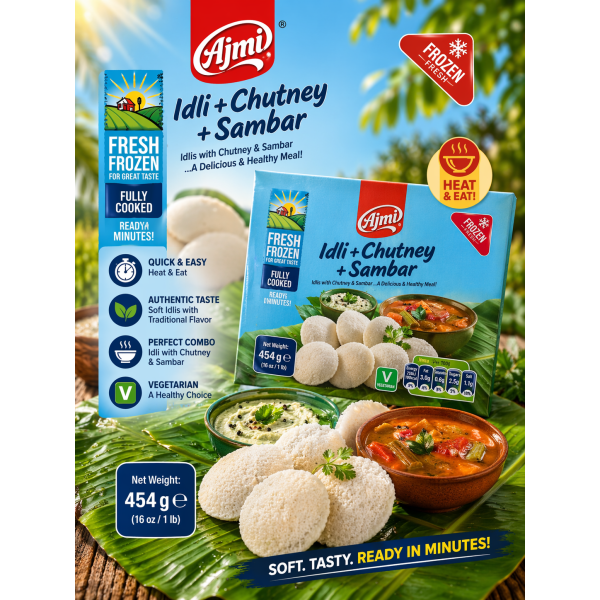 AJMI Idli with Sambar & Chutney 454g – Ready Meal South Indian Combo